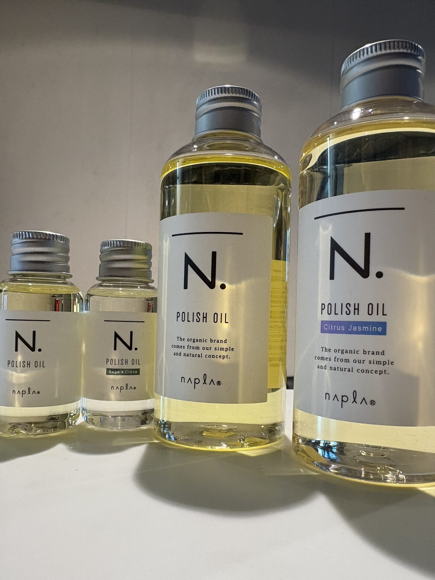 ポリッシュオイルは洗い流さないトリートメントオイルのように見えるのだけれども扱いはスタイリング剤だな。