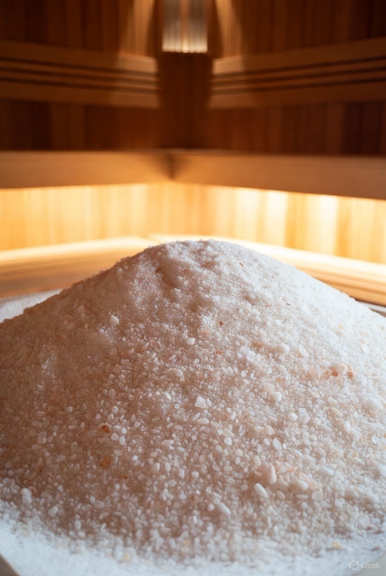 - 塩サウナ室の入り口辺りにある大量の塩ゾーンからこんもり塩を入手